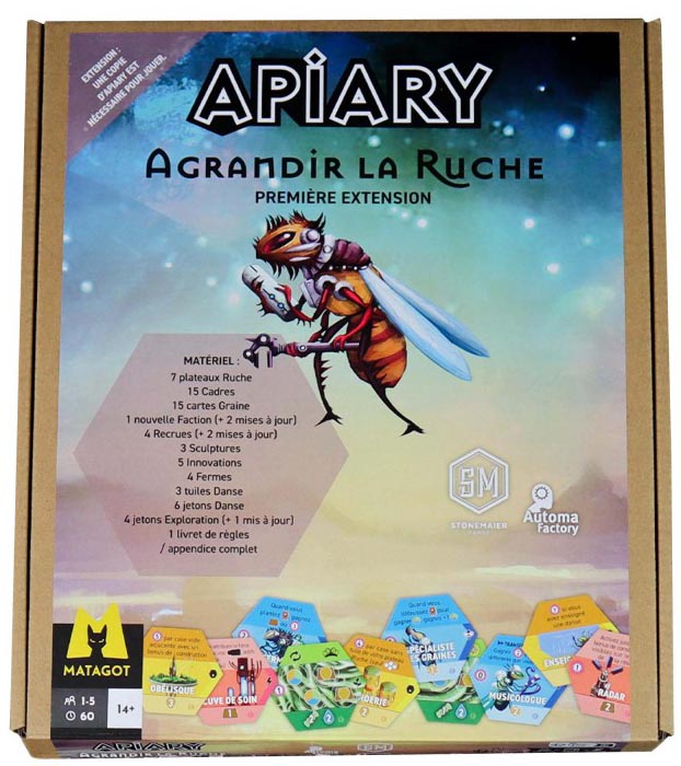 Apiary : L'extension de la ruche ajoute à la variété du jeu de base avec des composants conçus pour tenir dans l'encart original et une annexe complète qui couvre le jeu de base et l'extension.