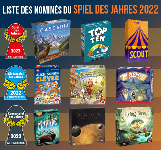 La liste des nominations pour les trois prix du Spiel des Jahres vient d'être révélée... et elle fait la part belle aux jeux originaires de l'hexagone
