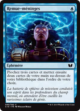 Les Anglo-saxons parlent souvent du "Brainstorm's Format" pour parler du Legacy. Donc il est normal de présenter cette carte qui est LE cantrip le plus puissant du jeu. Couplé aux fetchlands, il permet de se séparer de deux cartes qui ne nous convenaient pas. Cette carte ne permet pas seulement d'améliorer notre main sur le tour, elle optimise aussi nos pioches sur les prochains. Une des cartes qui s'en approche le plus est sans aucun doute Sensei's Divining Top. Il existe également d'autres cantrips, moins puissants mais tout aussi efficaces dans le but de diminuer la variance de notre deck, comme j2dscx7ImZQFhkGuhUUWwvPzJddrIxnsUpAgiuZny84U4NM8p9qS4A2dLTbsjMTqGitaxian Probe, WBvv1FUQ6u0uG3HMRWN9tiB7YFp3jsWBnr8EzHxllaY=Ponder ou SfiMh1cFu4eSlOAWRLnpWTLl/eEbxppwVg030ZrITW0=Preordain. Il est également possible de voir des cartes comme SrpOVuM5ELmRLFDt0Kl/+qgHaY1p+o2baqlWtbrsCc0=Impulse dans certains jeux Combo.