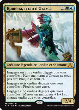 0erMWkuZ/JXSEDP4hMdtP+mGJezOGZ8ULihLyGVgXrC7CbUpzhG06kllHtPNEjyNrv77X2QcTs1IOvFKr8JmlA==Kumena, Tyran d'Orazca : un excellent ondin avec une bonne tête de général tribal Simic. Il a ce qu'il faut pour donner envie de builder : un CCM abordable, il ne meurt pas sur une Foudre, dispose de capacités statiques appréciables dont une capacité d'évasion. Quelques ondins ont vu des listes construites autour d'eux ces dernières années, principalement Talrand, invocateur céleste ou Première oratrice Zegana. Toutefois, l'un comme l'autre n'orientaient pas le build sur une liste tribale. Kumena détermine très clairement le plan de jeu, à savoir un pack avec moultes ondins plus ou moins vindicatifs pour user et abuser de papa. Ceux-ci faisant partie des tribus d'origine du monde de Magic, avec une hype à l'occasion du bloc Lorwyn, nous avons pas mal de prétendants pour intégrer la liste, les CCM des créatures étant pour la plupart très abordables. Ensuite nous avons de bonnes bêtes telles HGZRo+7HHD98lxsD6lgth9RFMwdqX4KUel9+oLuOU1OeGQSnHk1Zi9OZsvOVvQbiFjZCGq7gZs5//OnqR2nN7uuS8tyJPCAg7OTYNuOmKpo=Bannerette de pierreruisseau, vVn5hHJtULjoX9ZO2ArYSkGmFEwpOuDrQ9l4Op1br8gGE1ZfTcYi5TfBIKhItGXoT1QzzSpUegUmoezomjkPMw==Némésis de l'identité, k4cNLmWNFvffeGMuWpUZWmMVc1HFIhcmfa4wr0a8IEdSZ8YKG7SGPvaYVoz86m5zDLHM31U92sma1Wb6wv0uSQ==Kopala, gardien des vagues, Yo2PUX7yNBE89P1RZ3obljKgbvsVV1B/AO11ShpHZHkSW/gCy4sxfdfxA52jmpl2kkfLY/MiXJegc+cbKMZA2A==Prophètes de Vinerrance ainsi que les lords tels 5t4FoU8mlneiTgDCDzDPrIk0/nneU88LDbSt/ntudSu9lYaDABtWZfwx5kMmqg8mb+v3X2qtX4IDWXAvvDGg+OwLXoceTsKIibx/OM/G7hg=Maître du Trident de perles, pXMJmQGwhT9gIfuUHcM1QBJ/R8JMhrl5wPjILSOM5oUkdTq02au3tbLOTtNapPC2Reejerey suire, HR0+MUoeUKTtsVZfqg+42TFbwwvnRw6pI+nTPVUW0SLoVm62ZSz7e0f4+sgHWG5ZQCnPtwCJ8biYdS8gYbLygw==Seigneur de l'Atlantide, wc382y8fbPCqu+ryr4K3iIccbTLvvTpKIbLhy/UQznRi9C1DRy/j8NJqrtHNQVDxSouveraine ondine, wsfl1jS4bh4Oh262ApXVR2slIG9en4tdrLHQcJcYw3dXuazuhfpNoZd1u3kGITQceo7e3FFUsHGcynqGVGoWgRWBnnhNxwfnBt95xPi8ky8=Commandant au casque de corail et la nouvelle /AKr1MaKC79Btp4z4PKazuF29Ncn0wGzGP38glC9CQ1dHUk4ukSHMtos5UWWB+5wLieuse-brume ondine pour booster notre armée à écailles. Une synergie sympa est possible avec l'enchantement yYVMir0meJccqUtJnGbQGXlsmEhwz/aPtzRGspNN5hrxXTZqnNZFoft9MRt258x8Commerce suire, permettant au joueur d'à la fois engager des phases de bourre puis d'avoir des créatures dégagées pour ensuite piocher et/ou booster tout le monde. Si en plus nous avons le yxkdDZYvRoU/+v82hN/ajjLYtkVdbqbkfCa76WoTKHWUhjZS3DJrl44RcjAFb2okEuK5edmeqA0EaCuRNPxjx45uU2Iah5GF/q1Z7/qhbBw=Héraut des ruisseaux secrets sur le champ de bataille, c'est une bonne condition de victoire. Les ondins  étant peu nombreux car inédits à au bloc Ixalan, le build sera sans doute principalement  avec un splash , pour jouer peut-être quelque XManod7XVT3S36cze7og8lIDzi/ihdZ6aDHl9MohZt6gUuohtjvC5MiPrjAdaYhkColosse caméléon, PhvbVDMfeQHZKqP+cKD0AEk4Od0NawOwyKcsLYwG/9sZuuWREqBU0enRn2ih1adrEnvahissement ou ygbC6ymEcMl8tPT8JNZQ5ioqofiRIXBiIdtmxCsFvm8w9pHLHZY1iZHntw4r+ayOTriomphe des hordes. Cela dit, les quelques nouveautés ondines comme M/9MHfzd2soM539n5TiAJCXHA3pVR1AtrhUqpLQmyZzfTGARfmnzPpO361ILhmfFg2Sk6akEtoYbgeb0mFVzeg==Héraut à l'habit de brume, KkEbERoRmuxPzK/0AaT93MRiVIfFFAzqp9UcqGSm03O9TfNPX6lXH743ZoiNJ1A0yB767VnPVaSkzLeBDsAsoA==Elite de Plongeracine, SWjuBI67tOj05vC2/szql5V1w0tBipC/3pqyss1HE82EHGZlU8XmSaoc90/DrhUKY/MNnJkVTJlwtduxGTZsbQ==Gardienne expéditive, lh+cK5hJrrWOGdMvqYo8jhlwGIYcfzhUwwJ8b9/47vkK9bdCsXsuM5+6FonfKKcGPorteuse de Jade ou encore mbBvhBw7O3yz+pmK/DMiI+OaZpTArEPqNurQyTmz6UKxjOZgniyGi1KWT5OVJ0DxByWTWQzeSe3iCrQN+LFF1g==Précurseuse des Hérauts ajoutent du poids au build. Quoi qu'il en soit, Kumena fera sans doute parler de lui dans les semaines à venir, par nécessairement pour ses performances en tournoi, mais par les listes construites autour de lui. A mon sens, et à l'instar d'bqnTbH65GFC+NYyHYAjhyfDqZVKYVJlLfuPljoQyUdv6wp4myappSrcFUXeBnznKEdgar Markov ou I1BDiNbDIBUKIBGzdqu61e2vijIbfLugCDisqH5WfLip041aI7TmjuGne9pQm4UY8eDdCIS8KBciPom9m7RMkQm8FXVVtX8cK0EoK5Fi5dU=Arahbo, Rugissement du monde, l'ondin de Rivals of Ixalan fait partie des créatures légendaires pouvant lancer un nouveau joueur dans le format Commander avec du fun en perspective.