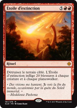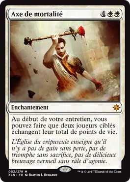Bon, une carte pour 6 avec un effet olé olé, on en connait des milliers. Une mythique à moins de 1 euros, généralement ça fait pas des étincelles. Mais alors on passe ? Oui oui, bien sûr... Bon ok, en standard, un coût converti de mana (ccm) de 6, c'est de plus en plus jouable. Et oui, il est vrai qu'avec pléthore de Xu/po761NvAAt1VvwfWvTk3WLmeQF8jSTNM8u+oMZyyMRCJkIid4oLJ7135sFFteColère de Dieu dans le format en blanc, on pourrait voir venir (BZCQr5GDyLj8klJVjUBSnTHyeG0RVsQnfG7KrMiN9f4=Fumigation, yB8uuqiLoISYwkGHLJypoMrrExe/ehSlicwSuyC+V/3AGEnHOTsN8NHb6r788BptLwxZvXr5UZEoUetNR7MwXQ==Aménagement des décombres...). Marié avec du vert pour accélérer ou du bleu pour ralentir en contrant, tout en piochant pour maintenir le card advantage (un peu comme le deck 3mMSCmdKeuz0O5CHVoJqziutJBoDTJ/Gql7FWv3cVyZx5YHk9igXP7CX8lbeqNXu9fcXVPoVpFoxMjEpVu9h+Q==Approche du second soleil). Mais bon, encore une carte à idées avec un prix qui donne envie d'investir (j'ai investi...).