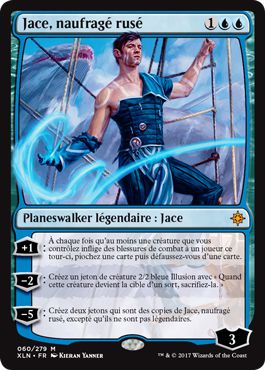Le plan est donc tout trouvé pour jouer ce Jace, naufragé rusé : obtenir rapidement les 5 marqueurs loyauté, et blinder le champ de bataille de token Jace. Dans cette optique, le -2 ne nous aide pas du tout, du moins pour cette première phase du plan. Une fois les tokens en place, pondre une armée de 2/2 illusion "mortellement ciblables" est notre condition de victoire.