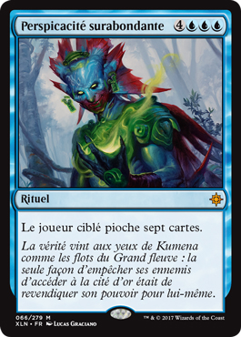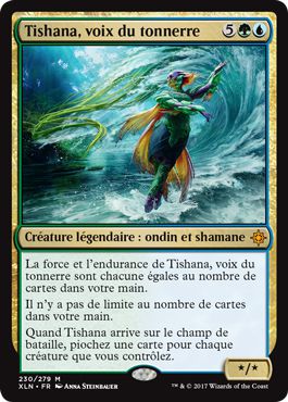 Perspicacité surabondante, par exemple, qui pourrait se tenter dans un deck Jhoira (mise en suspension) ; ou Tishana, voix du tonnerre, que j'ai commandé sur le site en un exemplaire pour la tester dans mon deck Animar en remplacement de la première oratrice Zenaga.