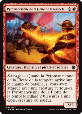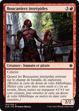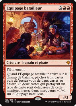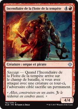 Donc, je regarde les pirates autrement. 4/4-contact mortel-menace pour , c'est déjà bien costaud. L'effet d'arrivée en jeu est dans le thème des decks pirates : aggro, voir weenie. Maintenant, faire perdre un tiers des points de vie à un adversaire tour 5, plutôt qu'un nombre précis (4, 5...), c'est nul si on a déjà bien baissé son total. Pire, je m'interroge également si ça ne va pas nous pénaliser encore plus que notre adversaire : si on est à 20 points de vie et lui à 12, on se retrouvera à 14 contre 9, soit un écart qui passera de 8 pv à... 5 !