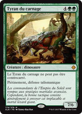 Passera-t'il la barre du Modern ? Pas évident à dire. Je ne vois pas de deck pouvant l'incorporer directement. Mais bon, s'il doit y avoir une carte qui puisse s'installer dans ce format, c'est bien ce Tyran du carnage.