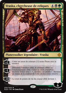 Et pour finir, voici le retour d'une ancienne gloire ! Bon, ce come-back n'est pas forcément tonitruant : d'abord, un +2 pour créer un jeton 2/2 Pirate. Si cette capacité est loin d'être mauvaise, on peut se poser la question d'un deck Pirates avec un planeswaker au dans son coût : il n'y a pas un seul pirate en vert !
