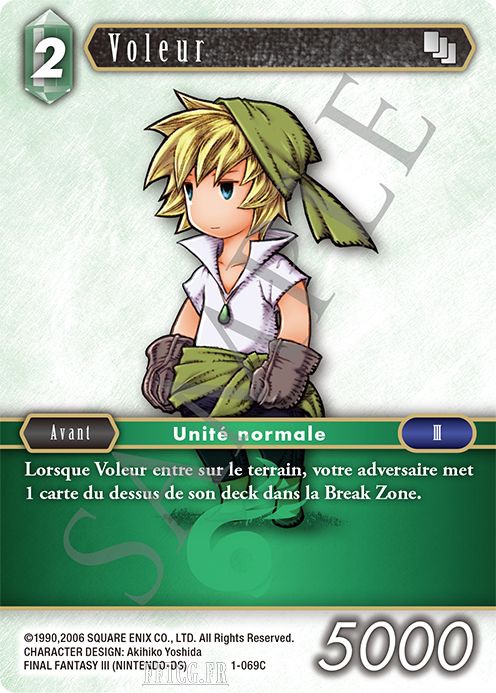 Par exemple, il ne peut donc pas être cherché dans un deck par une carte cherchant un job précis autre que "voyageur", son job initial. Il ne peut pas non plus devenir un "Seigneur Élémentaire" dans la Break Zone pour diminuer le coût de Golbez H.