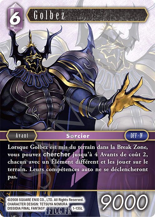 SI vous choisissez de le mettre dans votre deck et que vous décidez de le mettre sur le terrain après disparition de Golbez, son effet d'entrée sur le terrain ne s'activera pas, et vous ne pourrez donc pas mettre un Avant Feu supplémentaire de coût 2 sur le terrain.