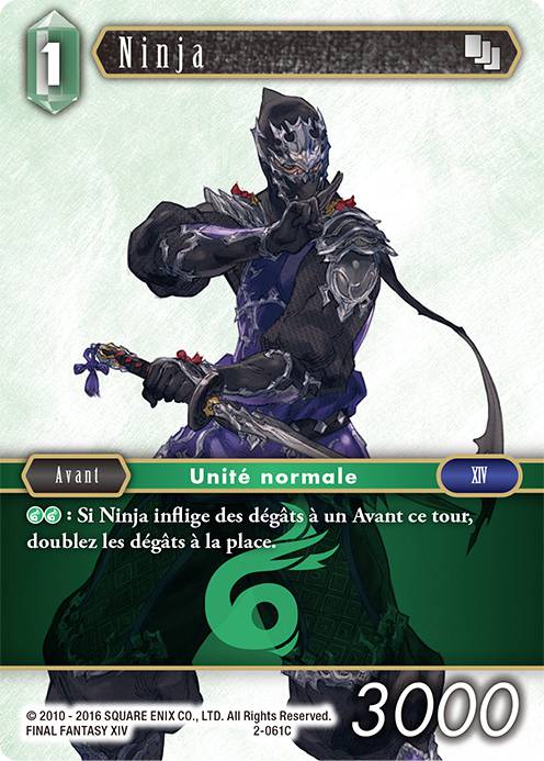 La formulation "Ainsi que l'Avant qui bloque ou se fait bloquer par cette carte" pourrait être mal comprise au sujet des attaques en équipe que Ninja pourrait bloquer.