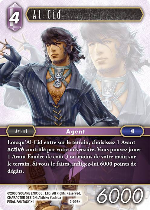 Ici, ce n'est pas tellement une question de formulation qui peut poser problème, mais plutôt une explication sur le fonctionnement de la carte. En effet, lorsqu'Al-Cid entre sur le terrain, il est nécessaire de cibler un Avant activé contrôlé par l'adversaire.